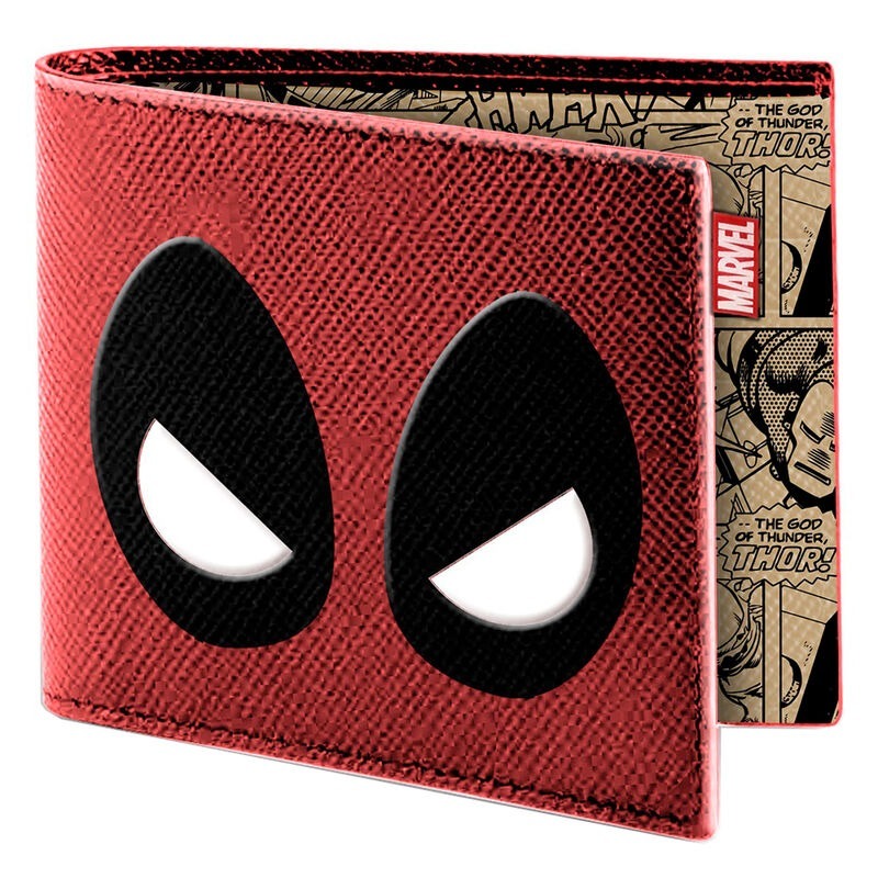 Esta Cartera Chibi Deadpool Marvel destaca por su diseño atractivo en rojo y negro, que incorpora la icónica máscara de Deadpool. Su diseño está inspirado en Deadpool, un personaje ficticio que aparece en los cómics publicados por Marvel Comics. Creado por el artista Rob Liefeld y el escritor Fabian Nicieza. Deadpool apareció por primera vez en New Mutants (vol. 1) #98 (1991). Esta cartera con licencia oficial de MARVEL, cuenta con muchos compartimentos para billetes y tarjetas pero también uno para monedas con un corchete. Además está realizada en PU, sin componentes de origen animal. se trata de una cartera de 12x12cm inspirada en la máscara de DEADPOOL. Un regalo original, pero también muy práctico, para los fans  de MarvelY es  un regalo perfecto para ocasiones especiales, que les dejará sorprendidos y encantados. Podéis ver más regalos de Marvel aquí.