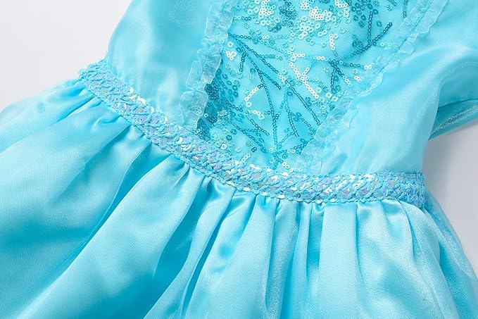 Incluye un hermoso vestido azul con detalles brillantes, una capa de tul con destellos mágicos y un diseño inspirado en el traje de Elsa en la película. Confeccionado con materiales cómodos y de alta calidad, permite total libertad de movimiento para que las niñas jueguen y canten como su personaje favorito. Disponible en tallas de 3 a 10 años. ¡Déjala brillar como la verdadera Reina del Hielo y que la magia nunca se detenga!