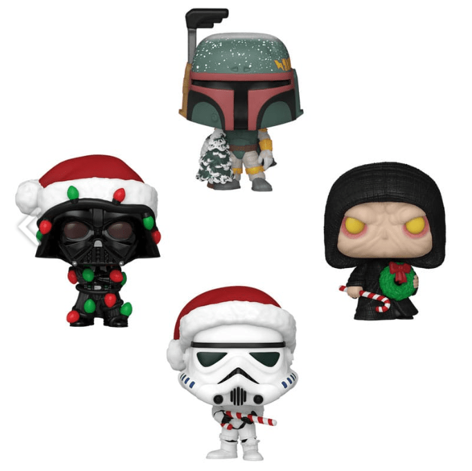 Este encantador conjunto presenta a cuatro de los personajes más emblemáticos de la saga en versiones festivas: Pocket Pop! Darth Vader, Pocket Pop! Emperor Palpatine, Pocket Pop! Boba Fett, y Pocket Pop! Stormtrooper. Perfecto para coleccionistas y fanáticos que quieren dar un toque galáctico a sus celebraciones. Producto oficial con licencia de Star Wars. Las figuras pocket tienen un tamaño de 5cm. ¡Haz que esta Navidad sea inolvidable con el Funko Pocket Pop! Holiday Tree de Star Wars! Una pieza única para decorar o regalar a los fans de la saga.