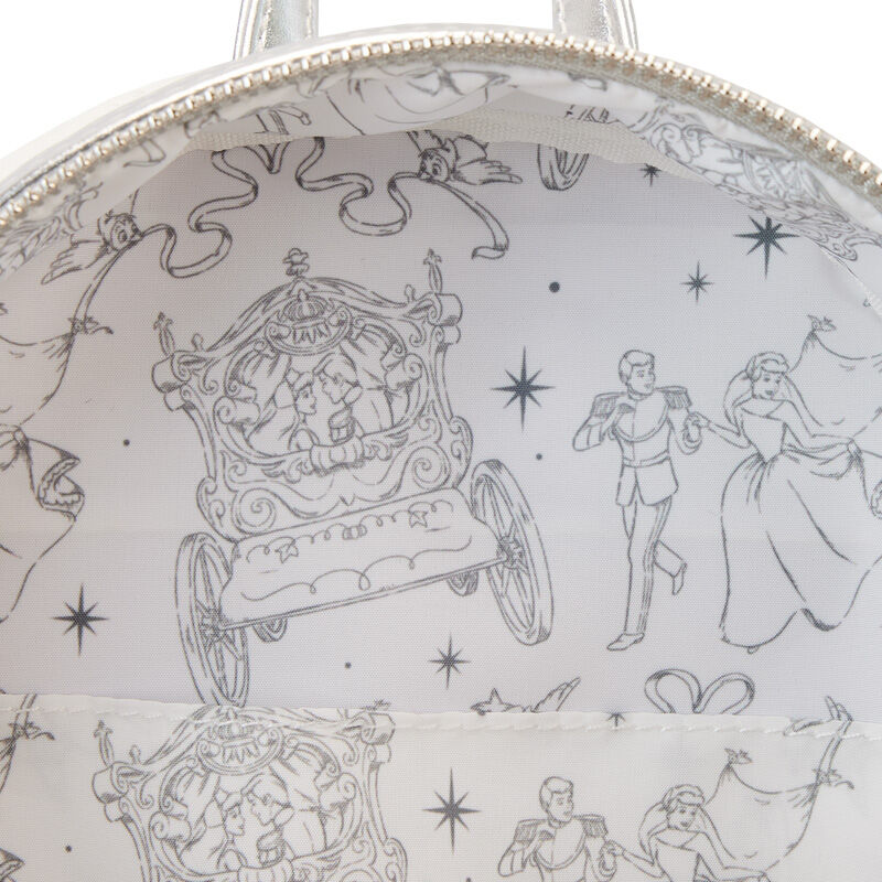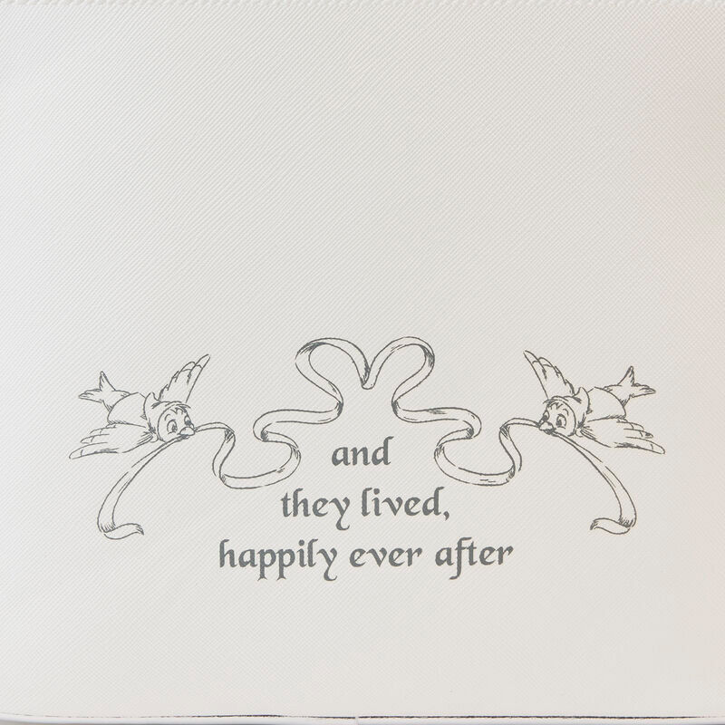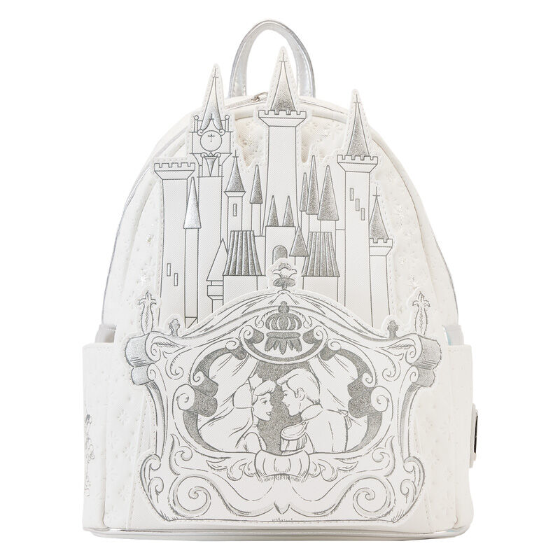 Esta Mochila Cenicienta Disney Loungefly 26 Cm- Happily Ever After parece una obra de arte, en la parte delantera aparece una escena con el castillo de fondo y la mítica imagen de la boda entre el príncipe y Cenicienta, y en la parte de atrás está la frase que identifica claramente los cuentos de hadas «and they lived, happily ever after» «y vivieron felices para siempre». Es un regalo original y una cartera única y de calidad para cualquier fan de la película y de Disney.