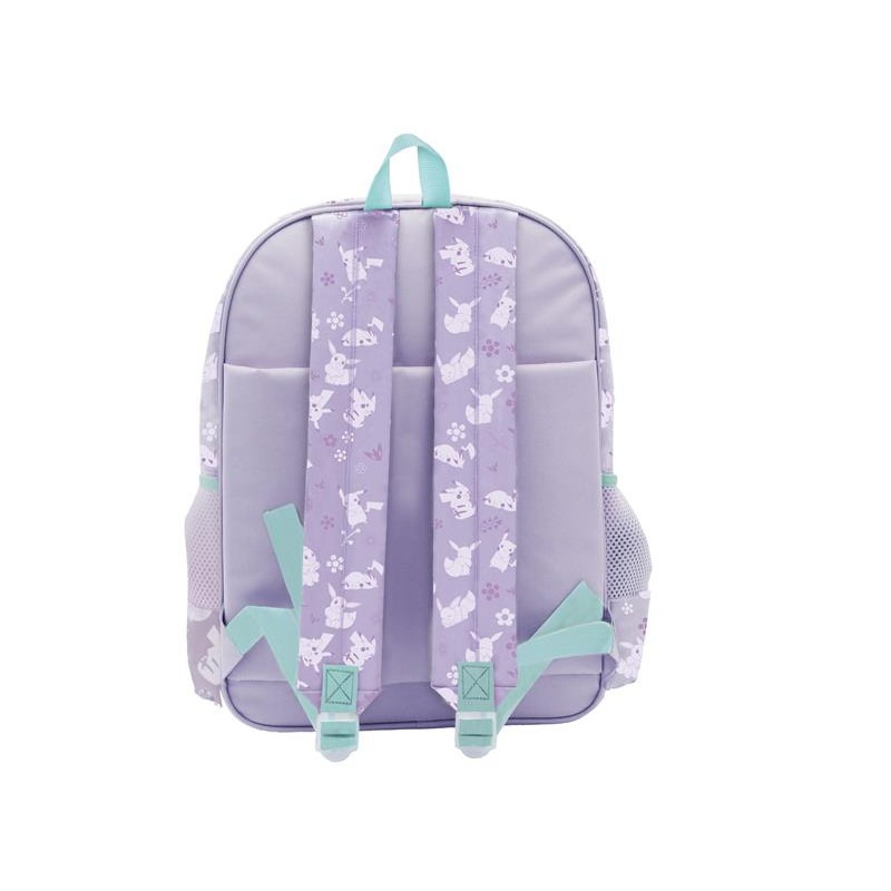 Esta Mochila Flowers Pokemon 42cm adaptable es ideal para cualquier fan de Pokemon. Esta mochila es perfecta para llevar al colegio gracias a su amplia capacidad y su bolsillo frontal. Está decorada con un panel de cuero sintético y unas originales correas de silicona. Cuenta con dos bolsillos laterales para llevar una botella de agua y sus tirantes están acolchados para ofrecer un plus de comodidad. Es una mochila escolar adaptable a trolley diseñada en tonos pastel con un diseño genial de Eevee y Pikachu. Es un regalo original para peques y para mayores fans de Pokemon.