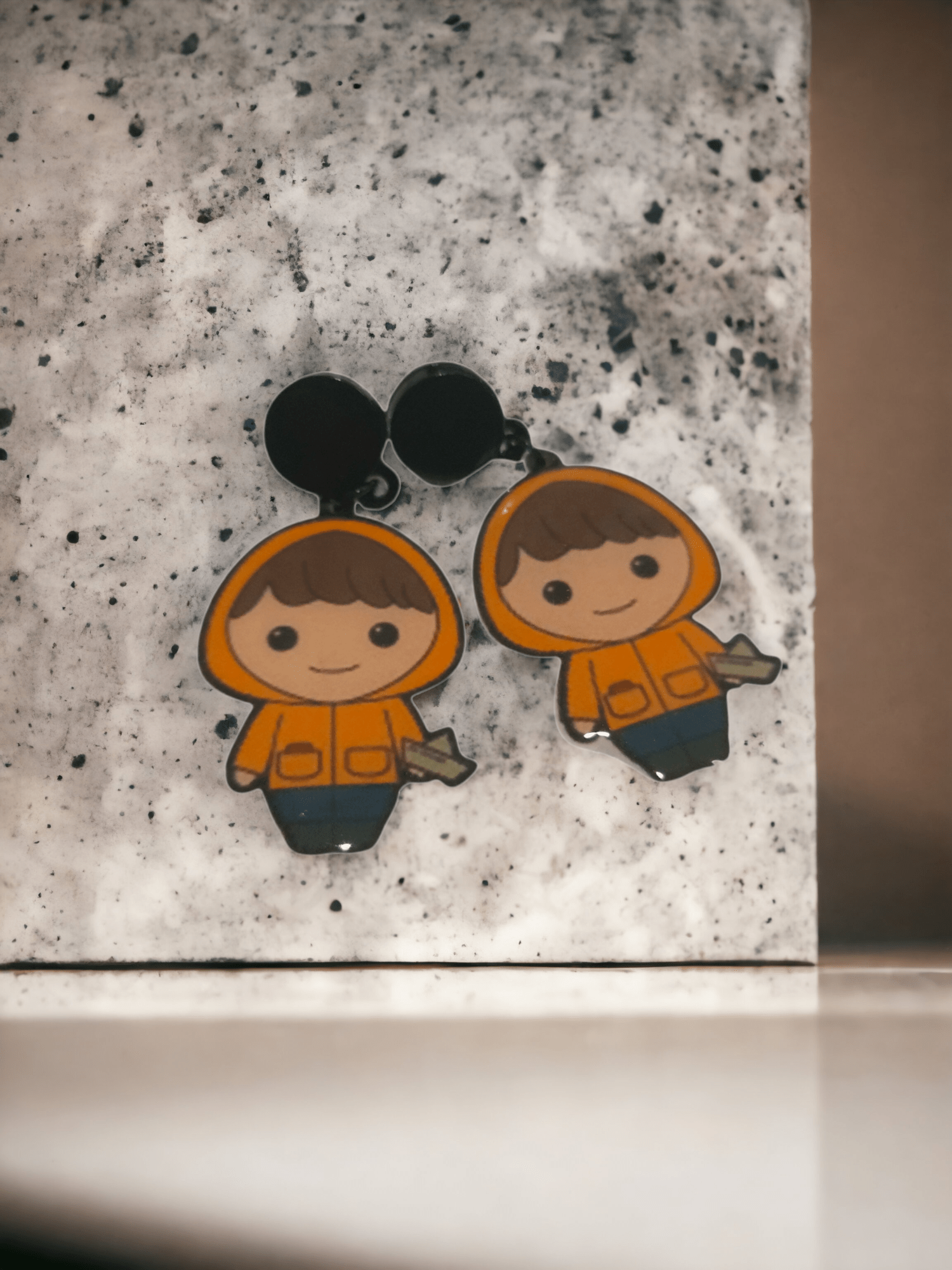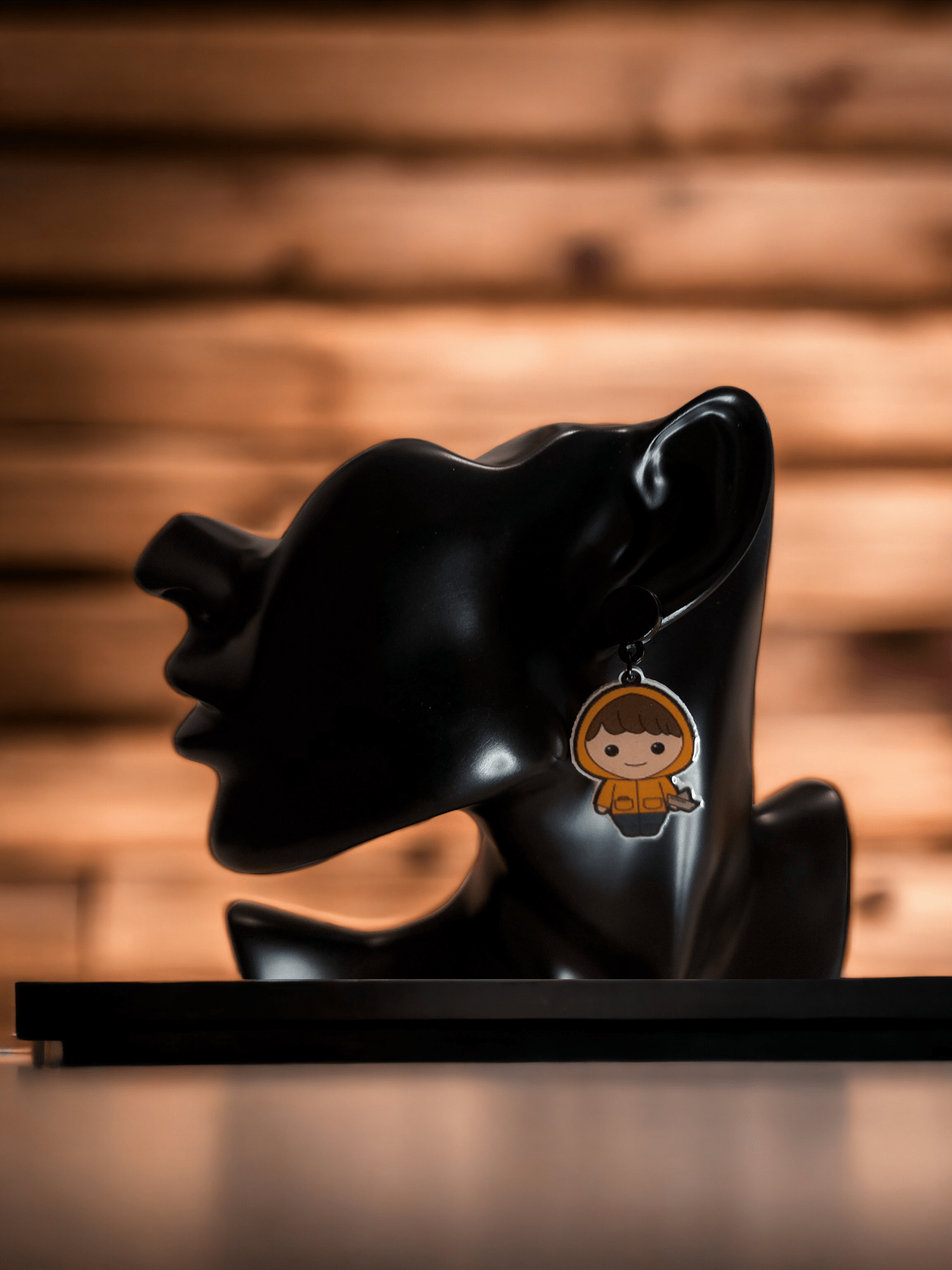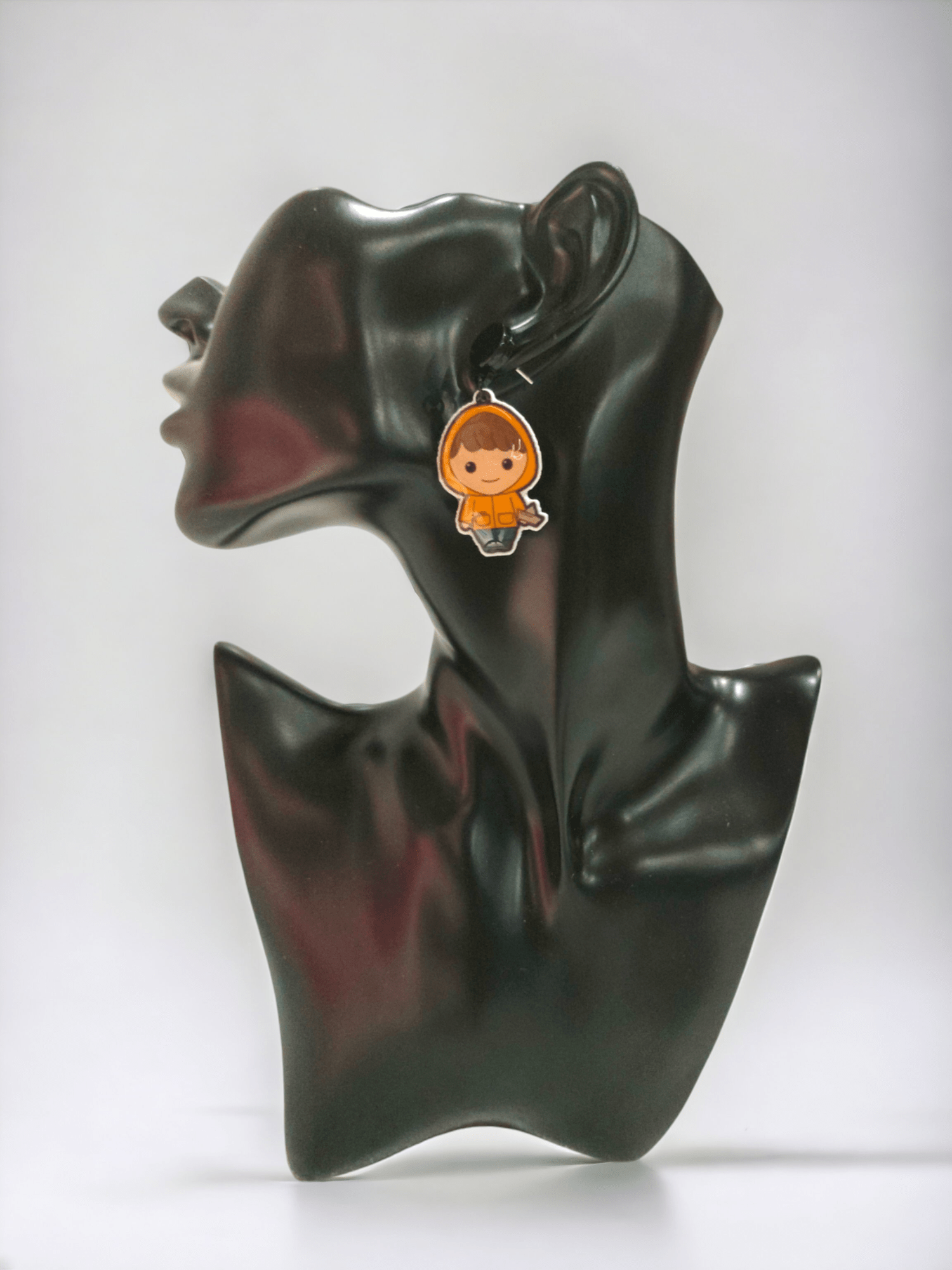 En el año 1990 se estrenó una miniserie con Tim Curry como payaso maléfico, y posteriormente en el 2017 se estrena la película IT con la misma historia con Bill Skarsgård haciendo este papel . (Más info aquí) Curiosidad: Bill Skarsgård da vida al terrorífico Pennywise en la cinta IT de 2017 y 2019y tiene una conexión con el payaso. Su padre, Stellan Skarsgård, apareció junto a Tim Curry, el Pennywise original de 1990, en La caza del Octubre Rojo (1990). Marca la diferencia con estos pendientes basados en el niño (Georgie) de la mítica escena de la película IT. Basada en el libro de Stephen King.