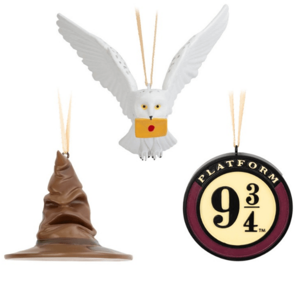 Este Set Adornos Navidad Harry Potter es un complemento genial para tu árbol de Navidad. Fabricado en resina y pintado a mano. Mide 70 mm de altura aproximadamente. Incluye una cinta para colgar en el árbol. Contiene tres elementos míticos de la saga: Sombrero Seleccionador Anden 9 3/4 Y Hedwig. En el universo mágico de Harry Potter, el sombrero seleccionador tiene la función de elegir en que casa de Hogwarts se clasifican los estudiantes nuevos de Hogwarts, el andén 9 3/4 es la zona de la estación donde los alumnos s dirigen para esperar el tren que les llevará al colegio de Hechicería y Hedwig es a lechuza y compañera mágica de Harry Potter. Deja a un lado la clásica decoración navideña y dale un toque mágico y original a tu árbol con este set. Un Regalo único para Muggles y no muggles. Es un producto oficial de Harry Potter, autorizado por Warner Bros., lo que garantiza su calidad. Puedes complementarlo con otros adornos navideños de nuestra web.