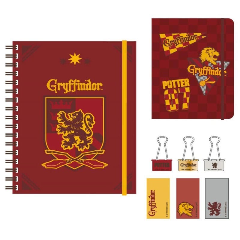 Este Set papeleria Gryffindor Harry Potter se basa en Gryffindor, una de las casas de la escuela de Hechicería de Hogwarts. De esta casa han salido magos muy honorables tales como Harry Potter, Hermione Granger, Minerva McGonagall, Ronald Weasley, Neville Longbottom, Albus Dumbledore, etc. Puedes complementar o buscar más ideas de regalo en la sección Harry Potter.