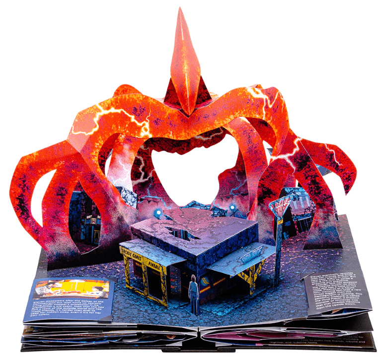 Stranger Things: El Libro Pop-Up Definitivo es una impresionante obra coleccionable que da vida al misterioso y nostálgico mundo de Hawkins, Indiana, a través de elaboradas ilustraciones en 3D. Este libro incluye detalladas escenas emergentes de los momentos más icónicos de la serie, permitiendo a los fanáticos revivir las aventuras de Eleven, Mike, Dustin, Lucas y Will de una manera completamente inmersiva.