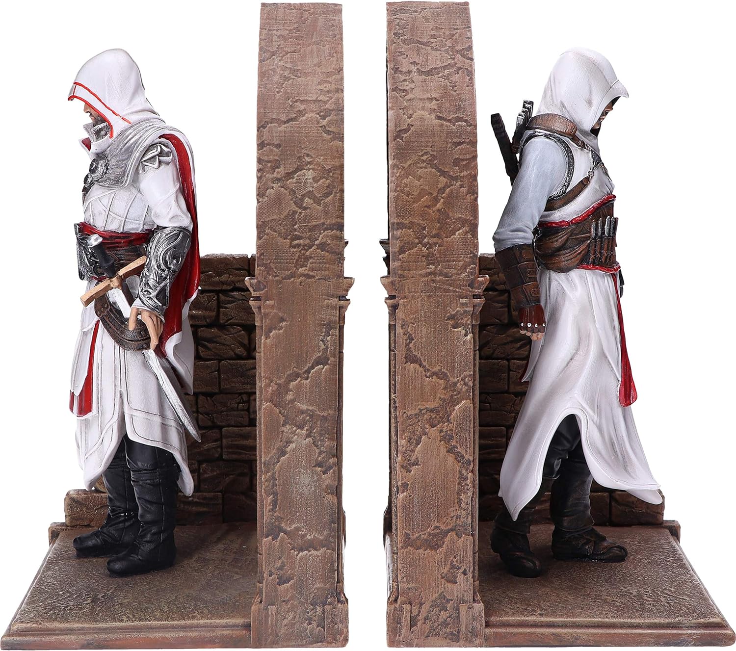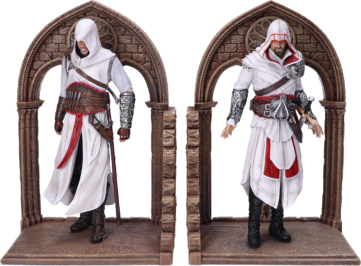 Dale un toque original a tus estanterías con este SUJETALIBROS ASSASSINS CREED ALTAIR & EZIO. Se trata de un set esta inspirado en dos de los personajes sin duda más importantes de la saga Assassin’s Creed, Altaïr Ibn-La’Ahad y su descendiente, Ezio Auditore, miembros ambos de la Hermandad de Asesinos que protagoniza este juego. No te pierdas la enorme cantidad de detalles que tiene este set, con las figuras Altair y Ezio, con todos sus detalles característicos, tanto en el rostro como en sus atuendos, y también en los arcos de piedra que tienen detrás. Un artículo muy elegante, de esos que quedan bien en cualquier sitio, y perfecto para sujetar tus libros y juegos favoritos de Assassin’s Creed. Podéis encontrar más productos de videojuegos en la sección Gaming.