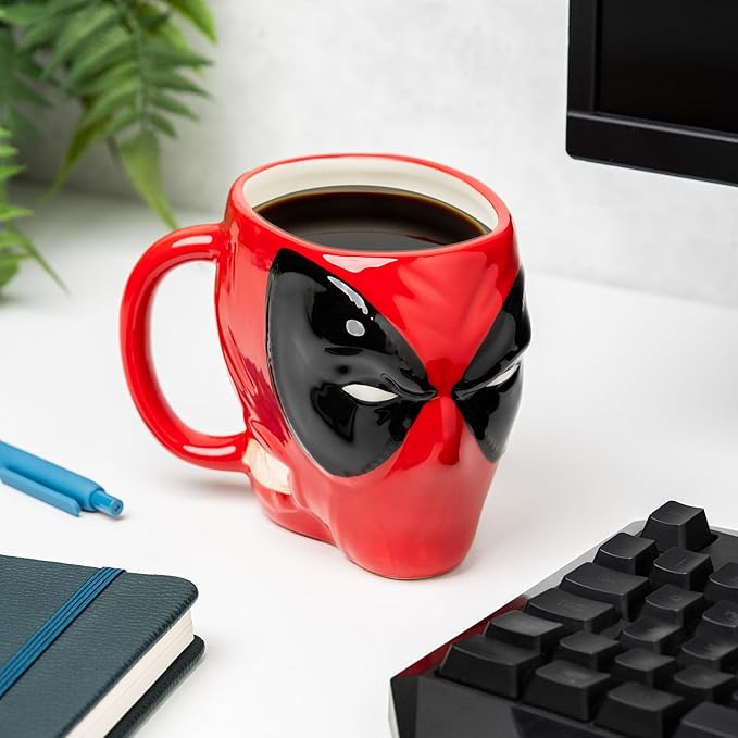 Esta Taza Desayuno Deadpool es ideal para tomar tu bebida favorita. Su diseño está inspirado en Deadpool, un personaje ficticio que aparece en los cómics publicados por Marvel Comics. Creado por el artista Rob Liefeld y el escritor Fabian Nicieza. Deadpool apareció por primera vez en New Mutants (vol. 1) #98 (1991). Esta taza de cerámica 3D de gran tamaño con forma de Deadpool tiene una capacidad lo suficientemente grande como para proporcionarte una inyección de cafeína muy necesaria por la mañana, o con un chocolate caliente caliente para ayudarte a relajarte al final de un largo día duro. Úsalo una y otra vez en casa, o llévalo a tu lugar de trabajo y comparte tu amor por este personaje icónico con tus colegas. Esta taza con forma de Deadpool tiene licencia oficial y aprobada por The Walt Disney Company Limited. También es una opción excelente para quienes buscan un regalo original porque es decorativo y funcional. Es ideal para los fans de Marvel y de Deadpool ya que puede verse claramente la esencia del superhéroe. Y es un regalo perfecto para ocasiones especiales, que les dejará sorprendidos y encantados. Podéis ver más regalos de Marvel aquí.