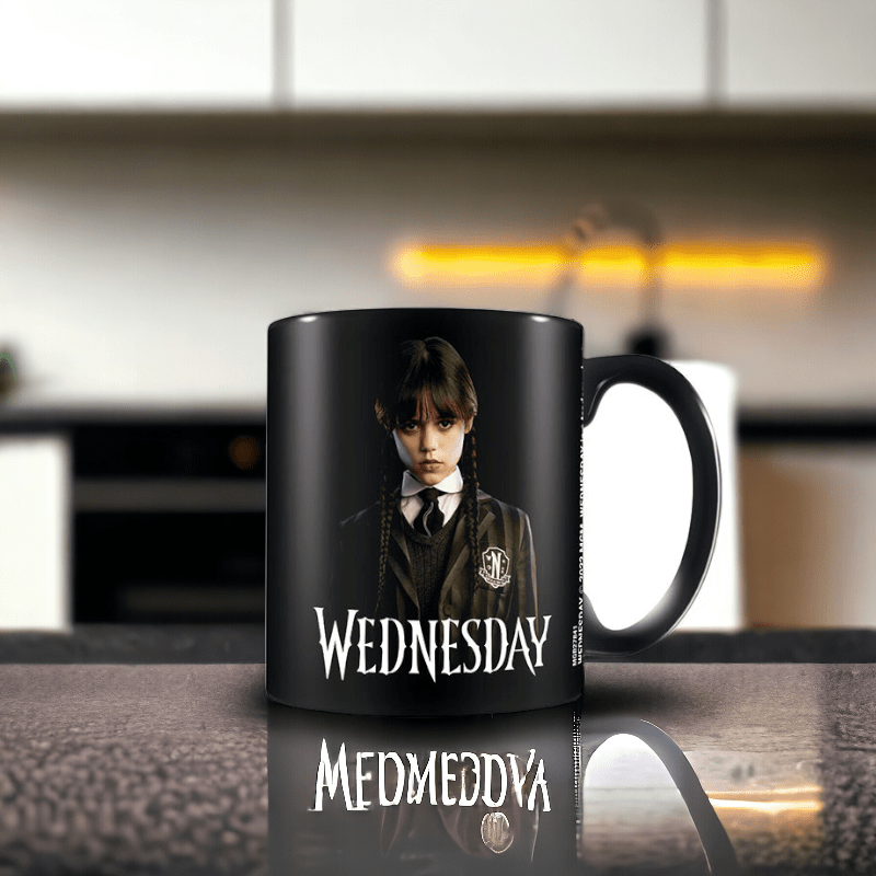 Esta Taza Negra Friendship Wednesday tiene todo los detalles de la joven Miércoles Addams, de la serie de televisión «Wednesday». La taza se basa en Miércoles Addams, conocida por su afición a lo macabro y lo oscuro. Además puede verse su gran amiga Enid de la escuela Nevermore. El diseño es genial, por un lado podemos ver a Miércoles con su vestuario característico, y en la otra cara el gran ventanal con las dos amigas. Es un regalo o autoregalo único para los fans de la Familia Addams y de Tim Burton.