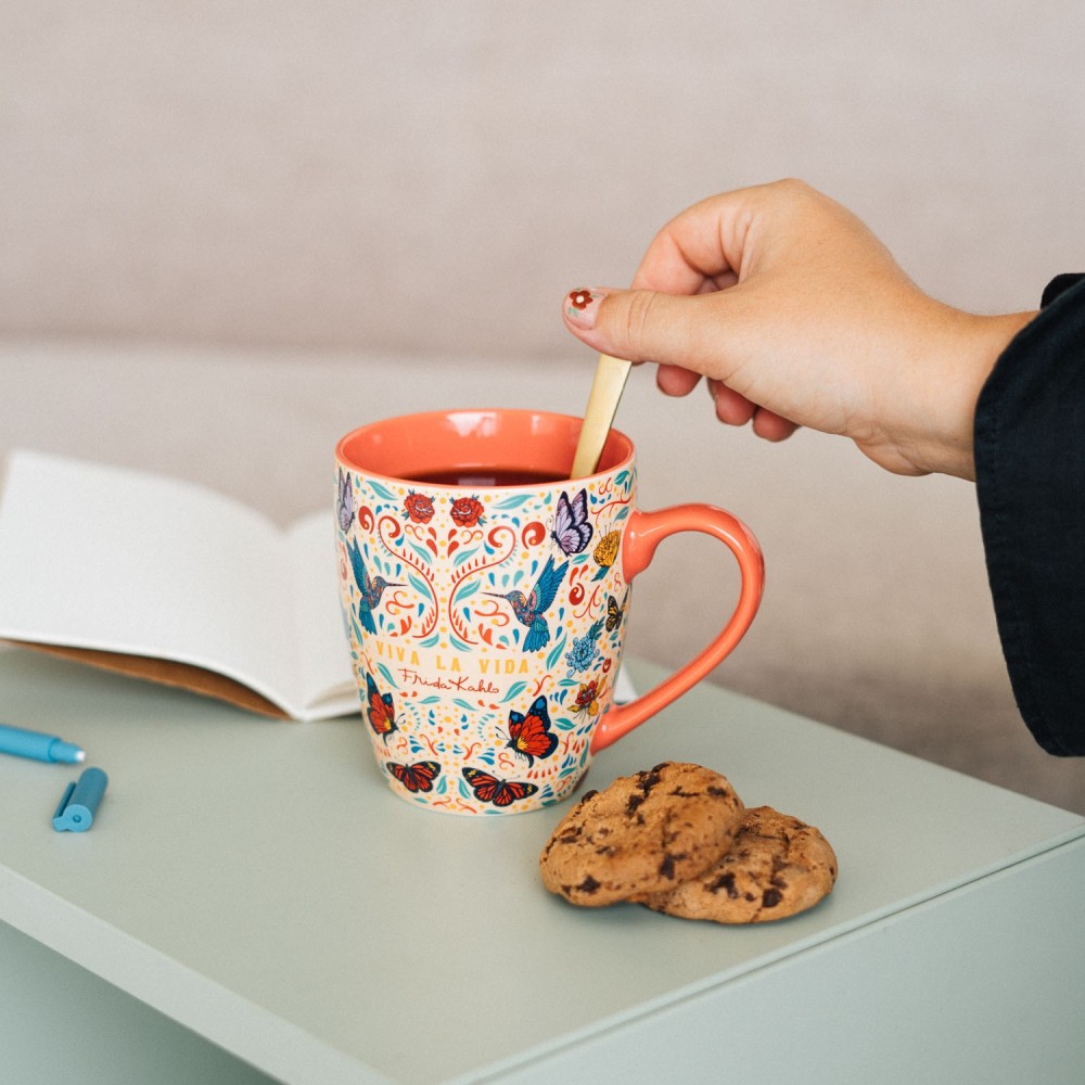 Más que una taza, es una pieza de arte que transmite energía y creatividad. Ideal para regalar a quienes valoran la autenticidad, el color y el espíritu libre de Frida Kahlo.